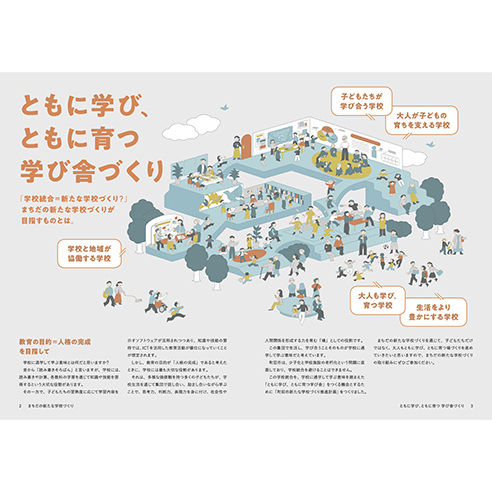 町田市の学校づくりに関するパンフレット内イラストを制作。